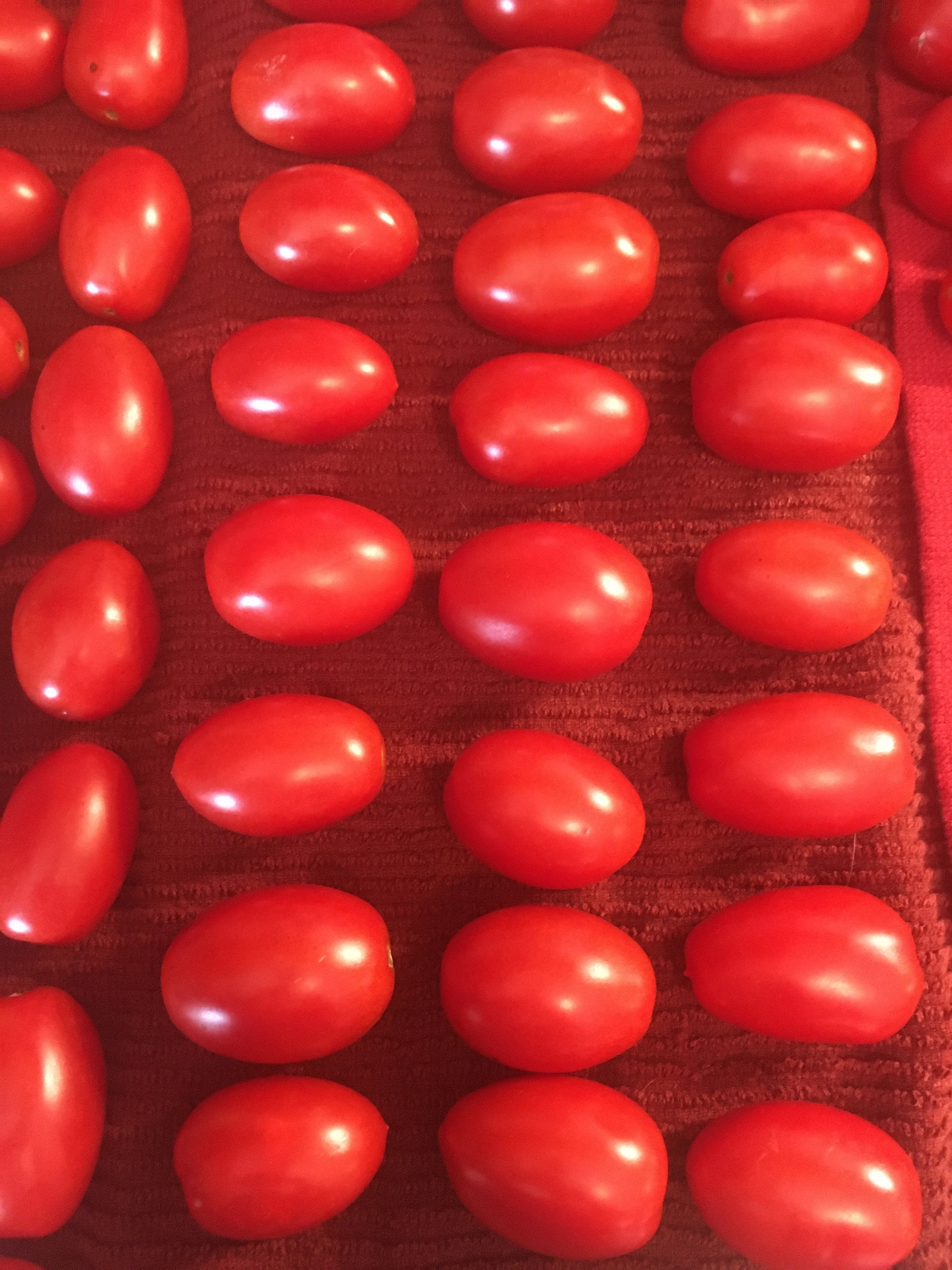 The first step is to pick your tomatoes. Any type can be used, but I really like a variety of grape tomato, called "Juliet". Some sources of seeds for this variety include totallytomato.com and seedsnsuch.com
