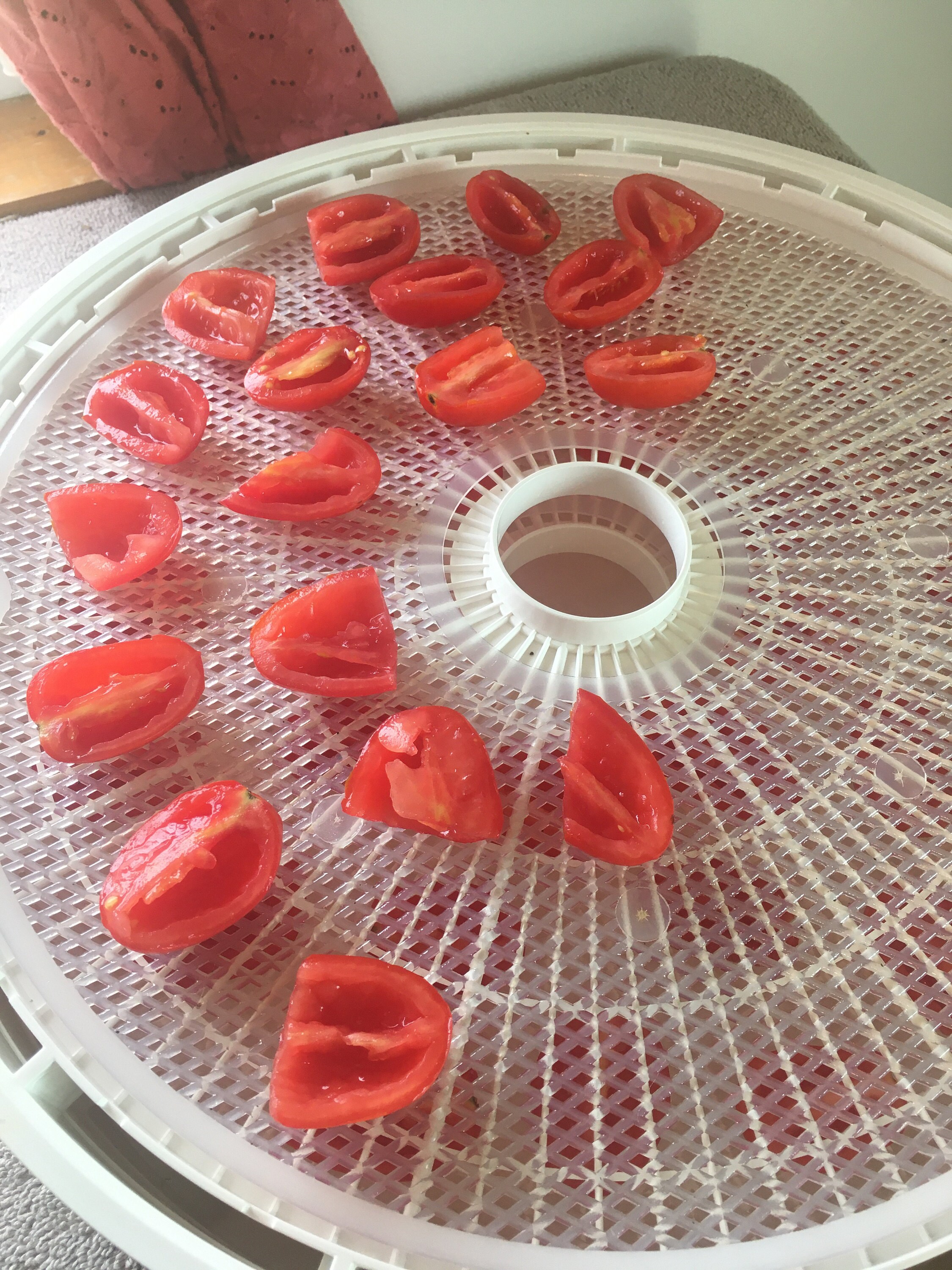 If you live in a very dry area, you might be able to let them air dry on racks. I live in East Tennessee, which is almost always humid. The tomatoes would rot before they dried properly. You could use an oven; but you only need 135°F, so an oven is a bit too much power and wastes electricity/gas. I use a food dehydrator.
