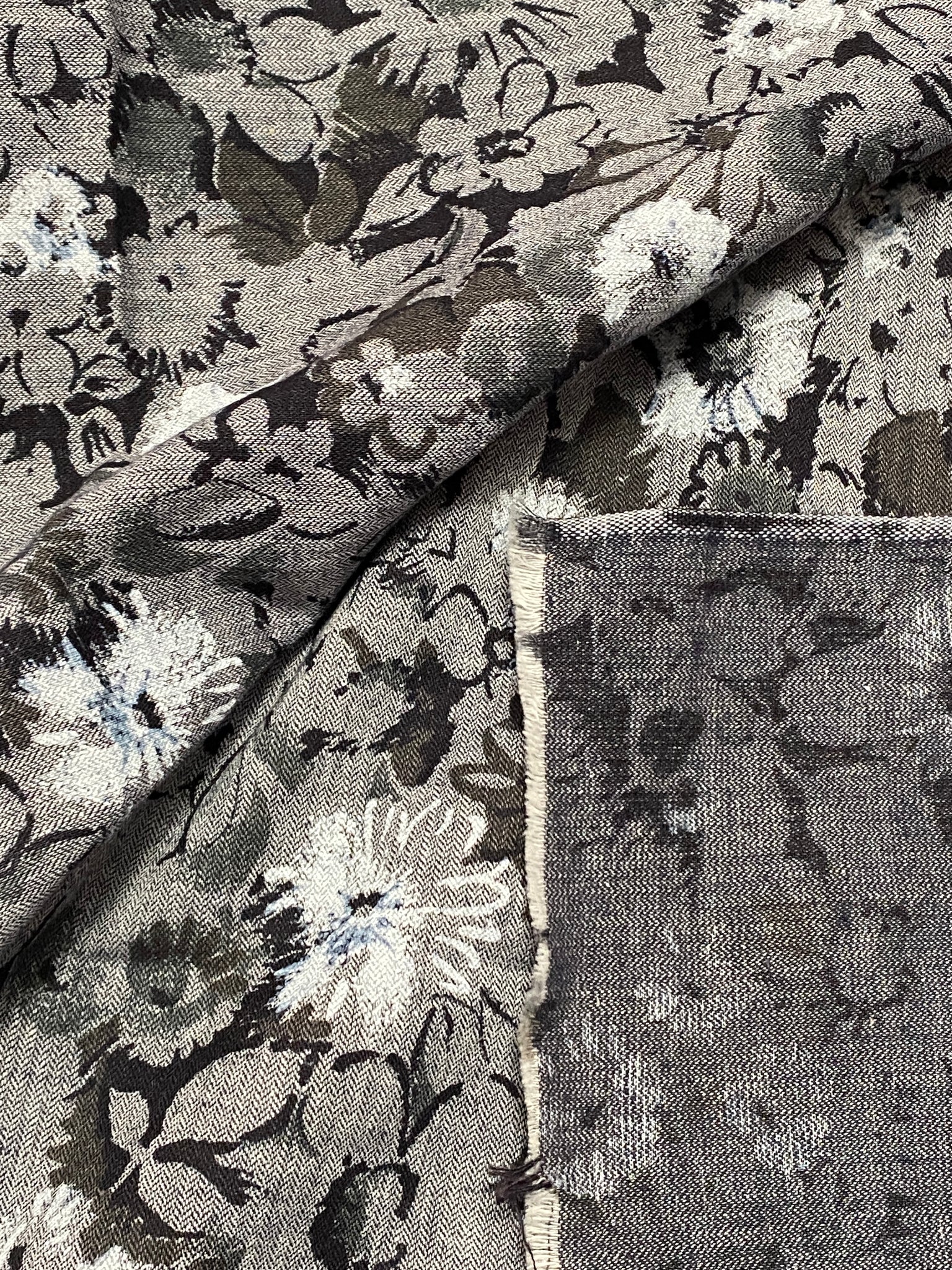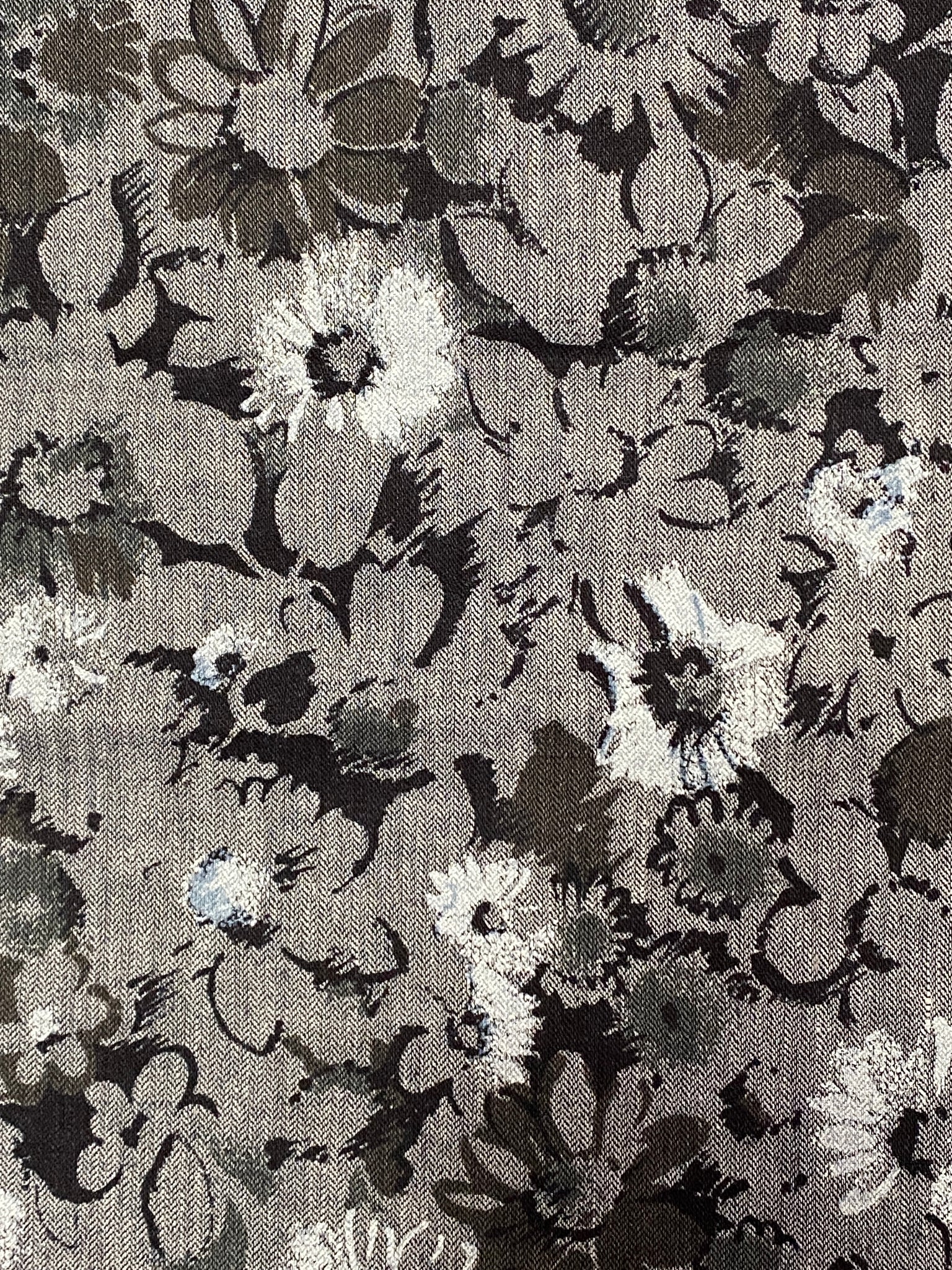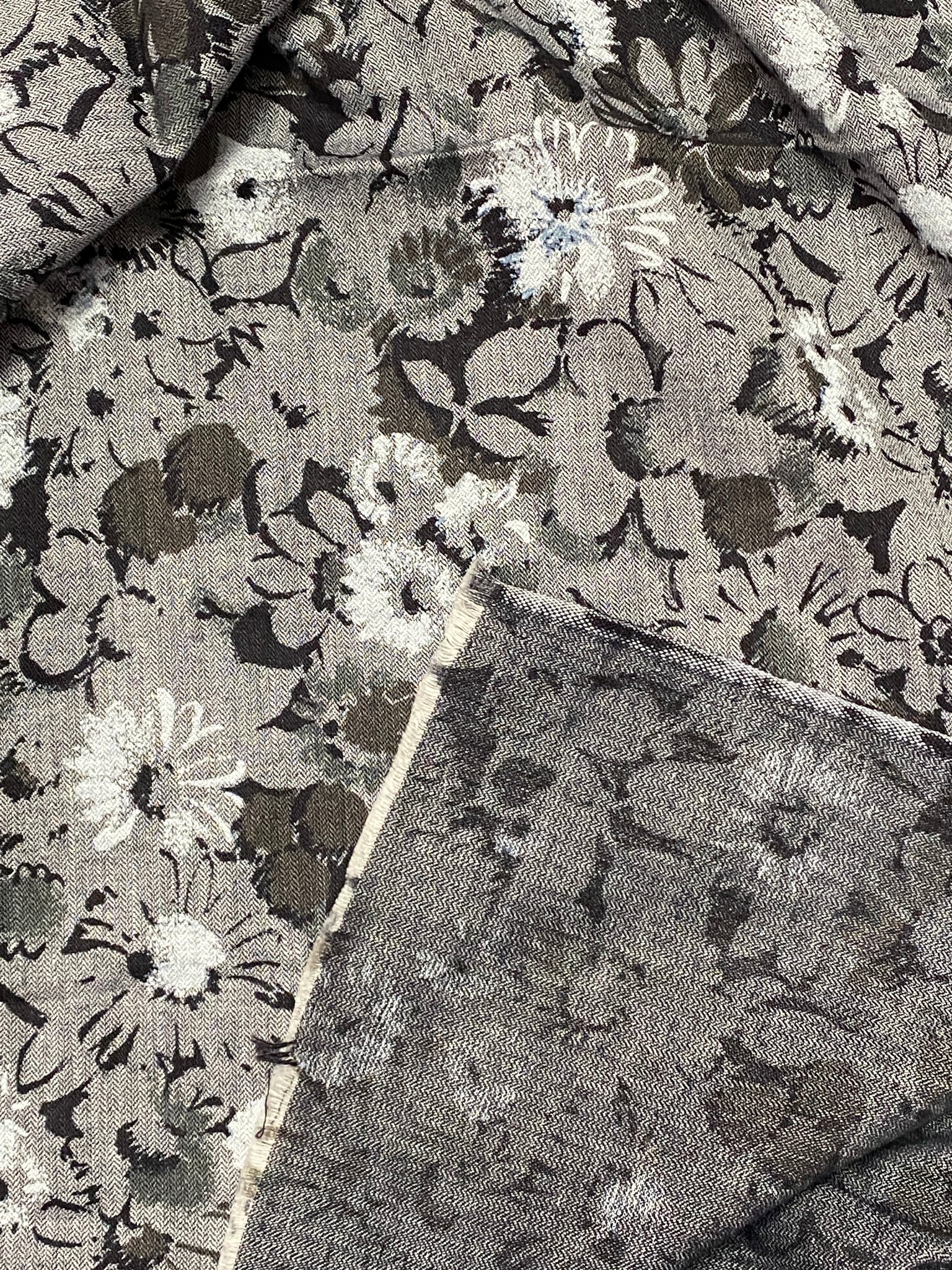 Grey, Black and White Floral Woven Fabric: Sold as a Piece
