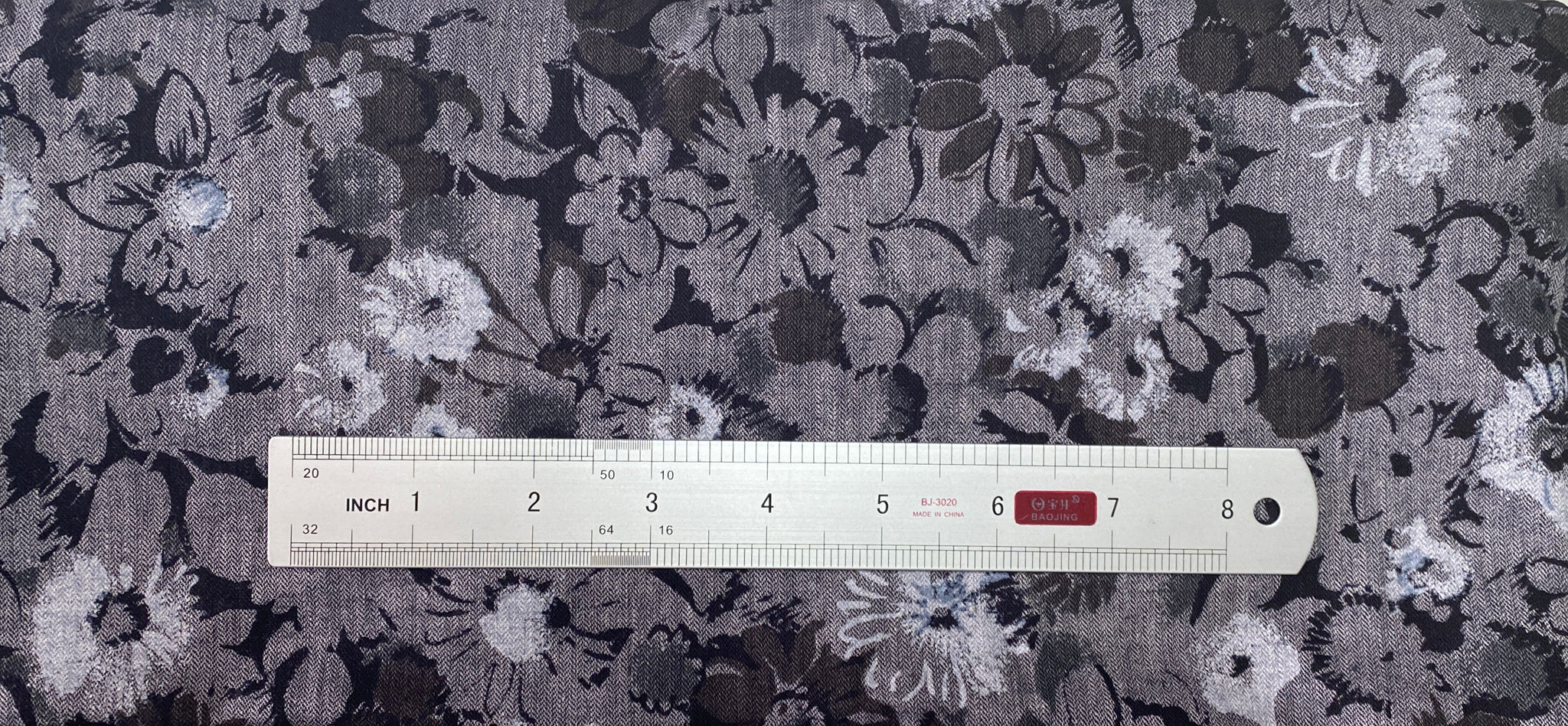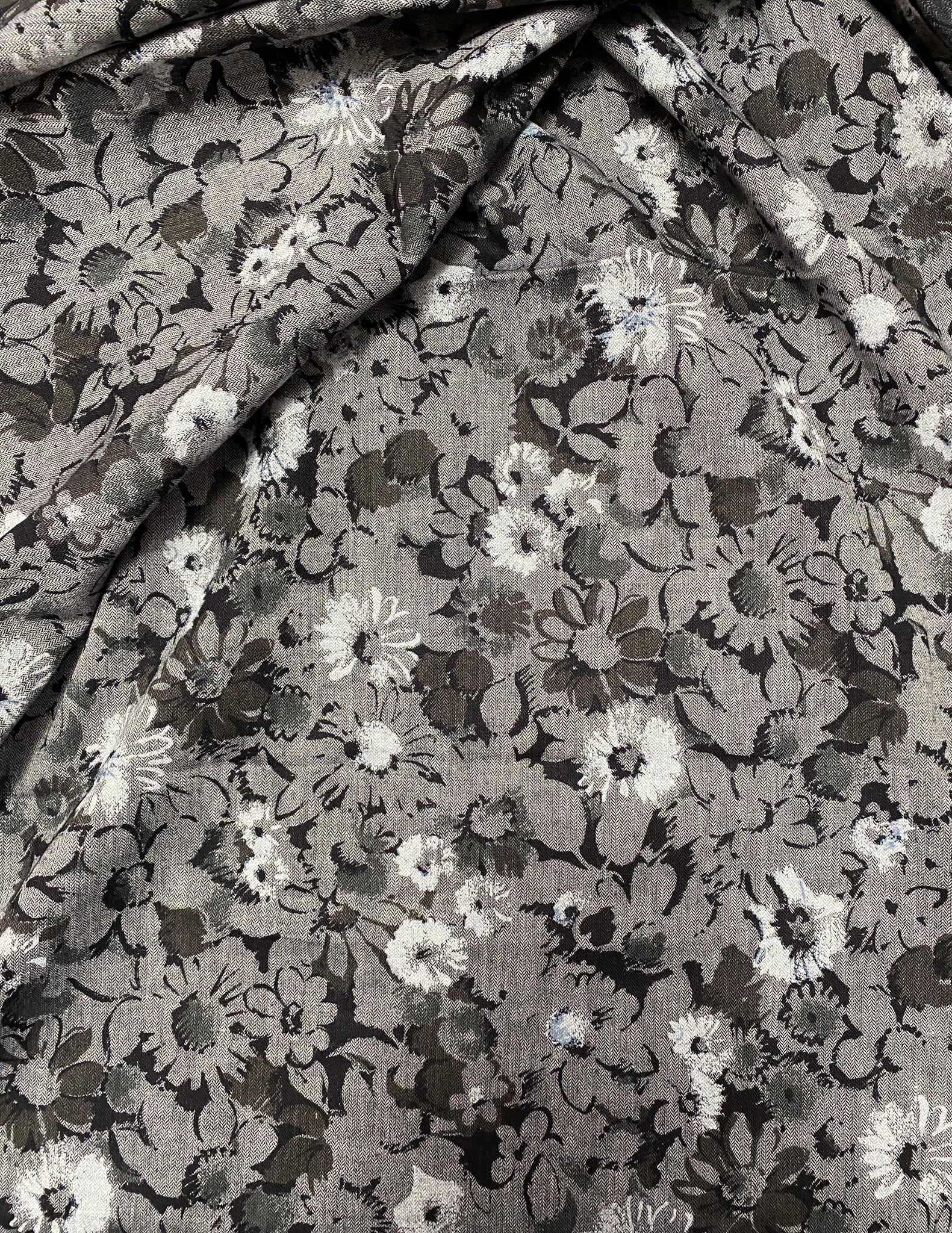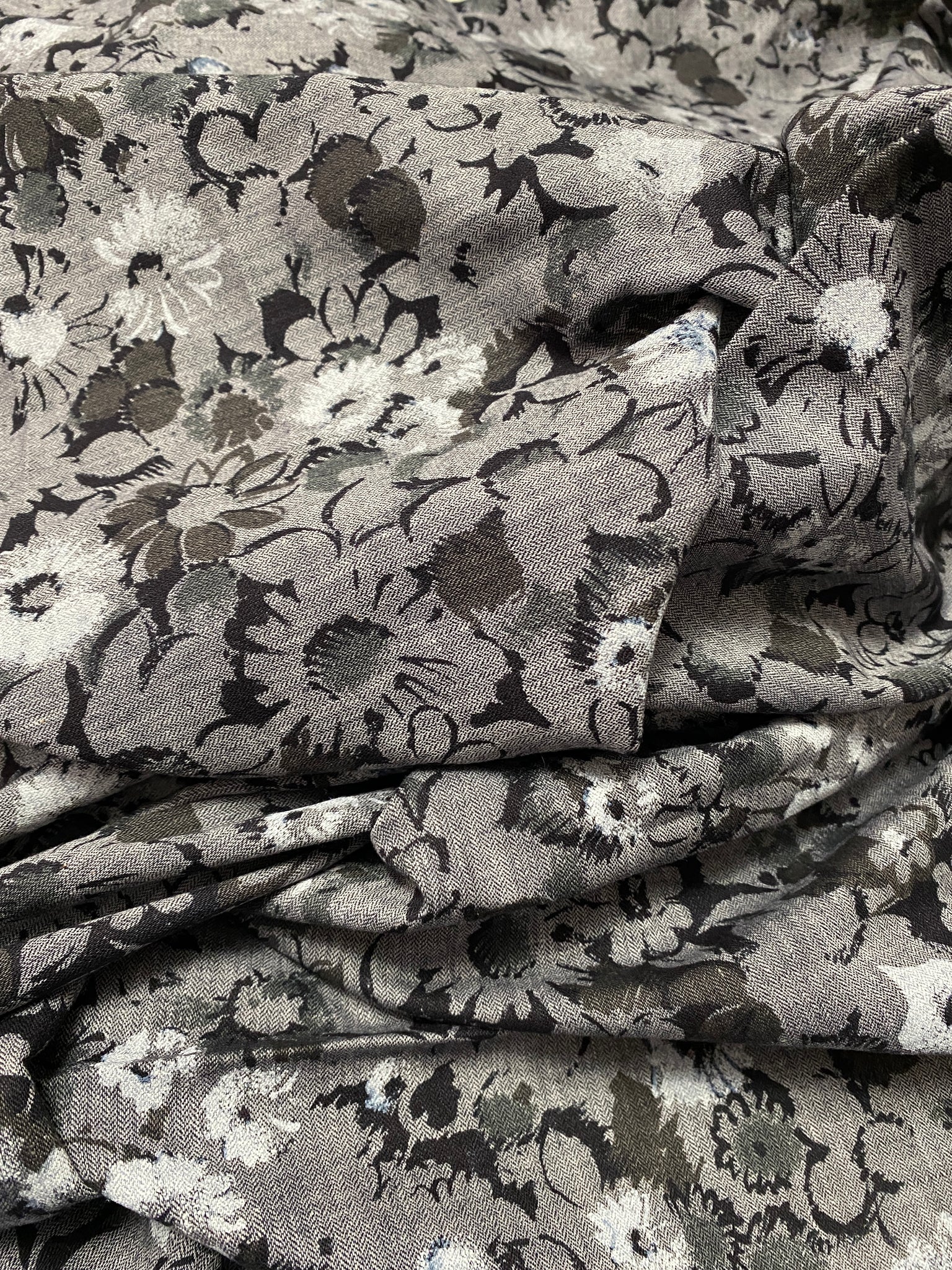 Grey, Black and White Floral Woven Fabric: Sold as a Piece