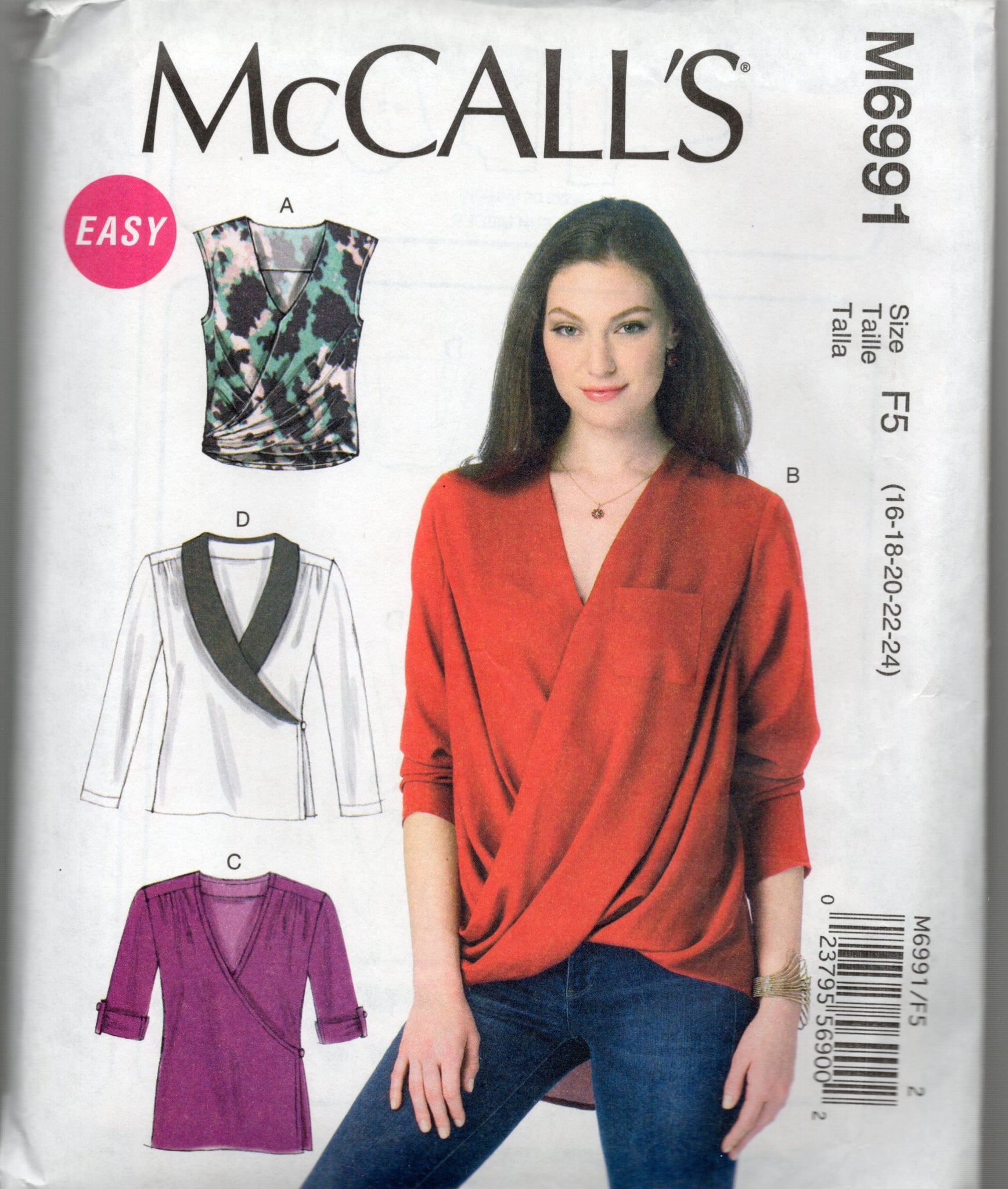 McCall's Pattern #6691: Crossover Blouse- Sizes 16, 18, 20, 22, 24 Easy