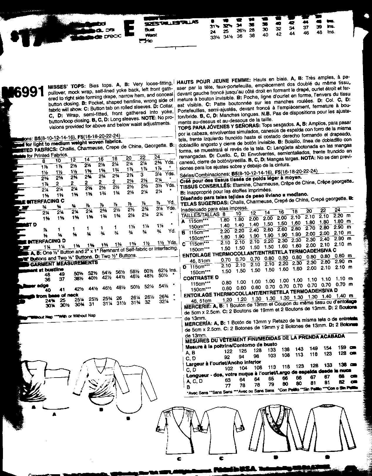 McCall's pattern 6991 has patterns for 4 different blouses with 4 different sleeve lengths.