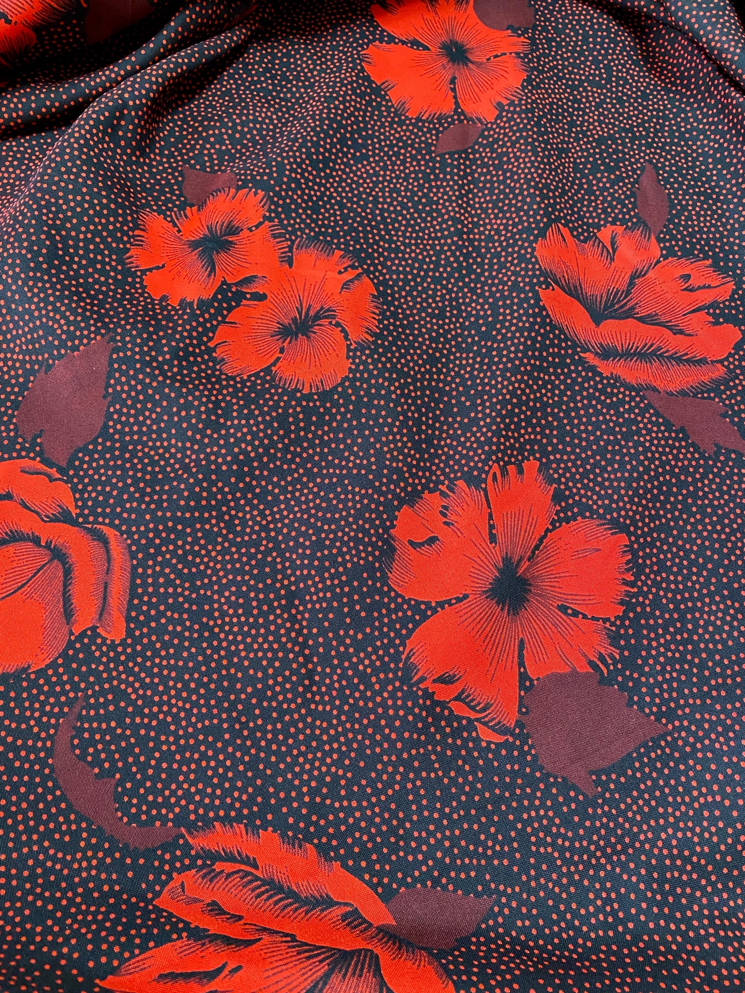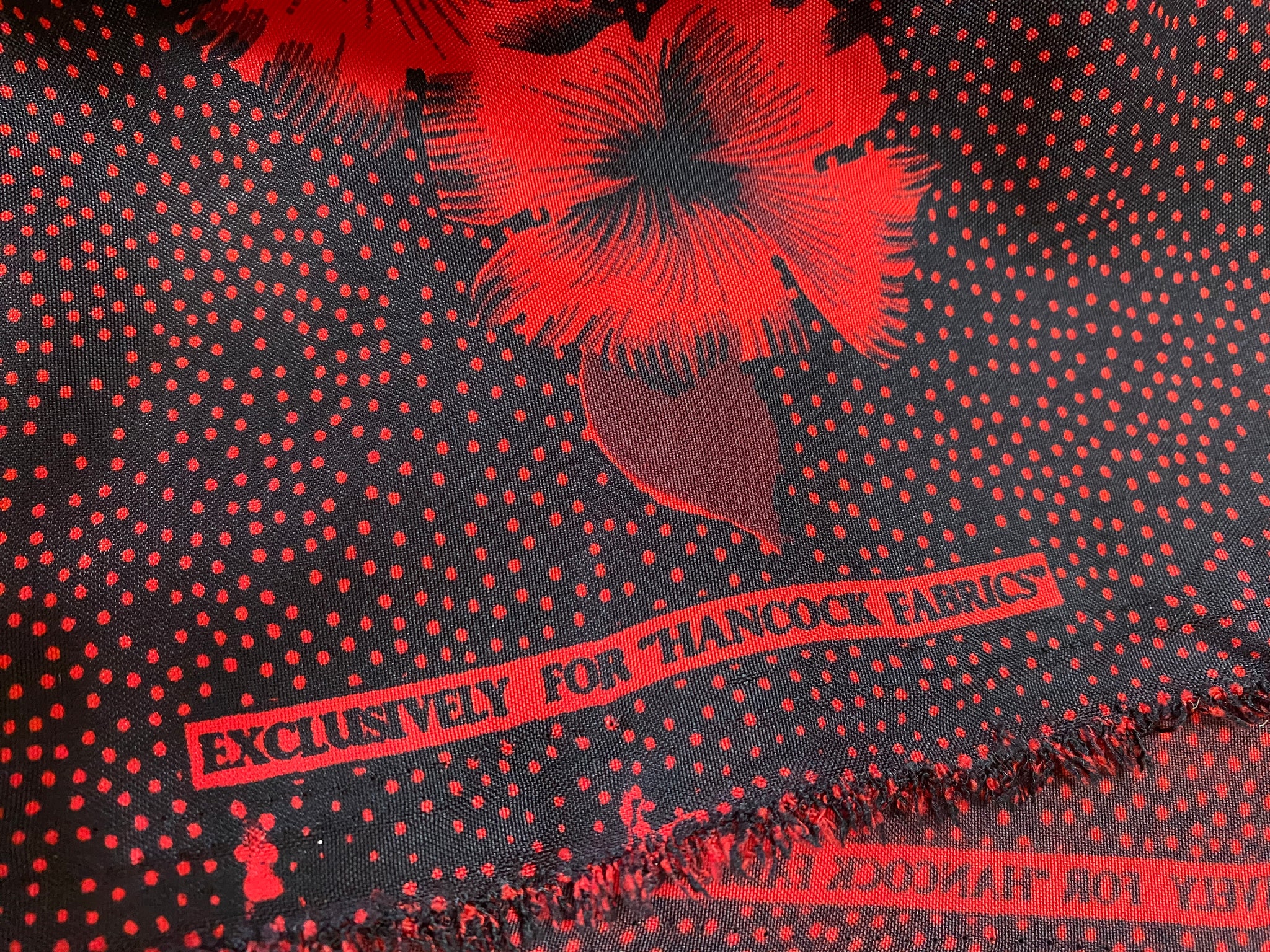 Red and Black Hibiscus Fabric Sold by the piece 56/58" wide by 2+ yards