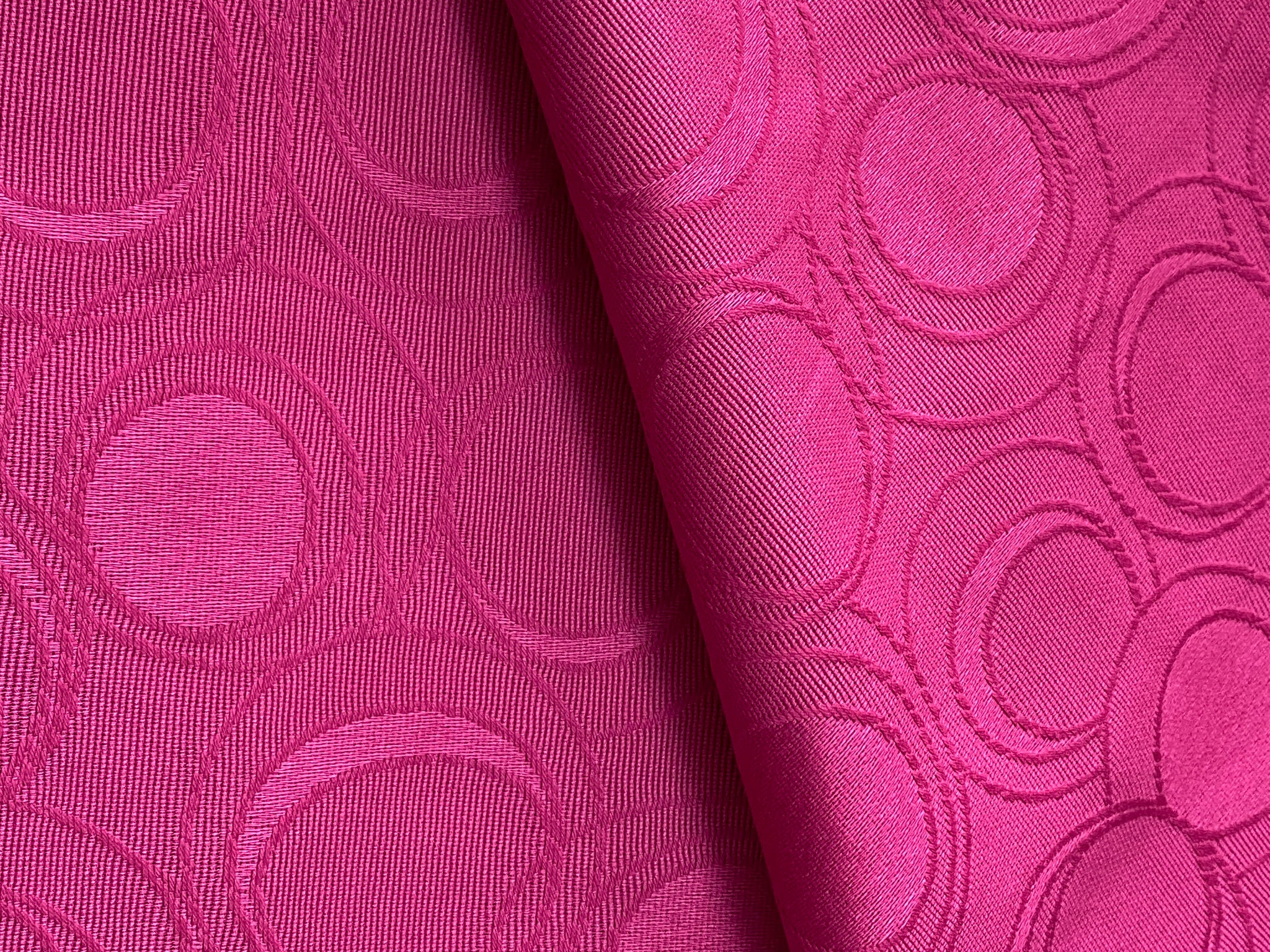 Another unique fabric in a sophisticated pink circle design.