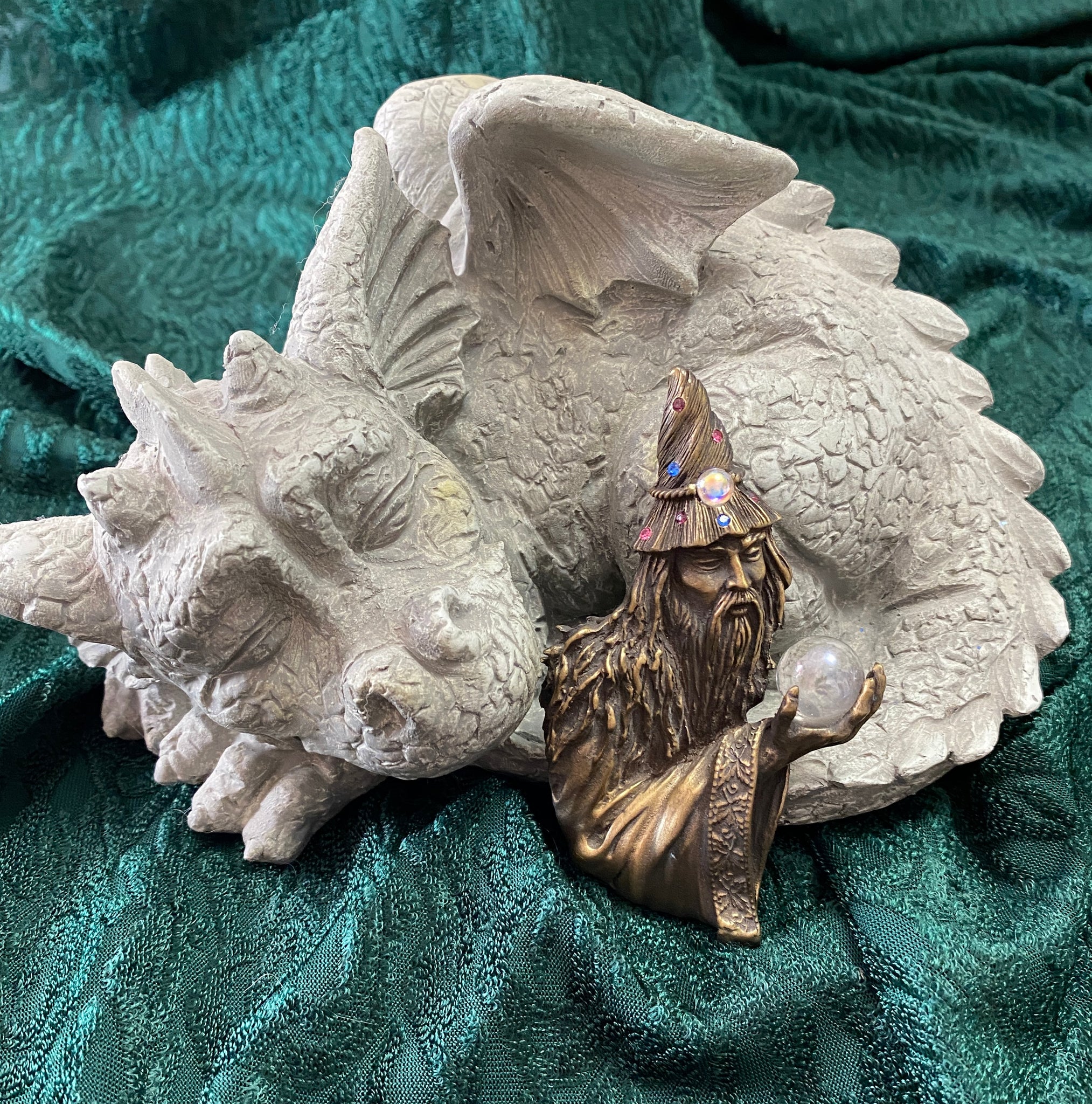 Clearly the Wizard would make an excellent cloak pin. He is 4" tall by about 2.25" wide and is heavy for a pin, weighing in at 2.25 oz. Made in USA. Dragon not included.