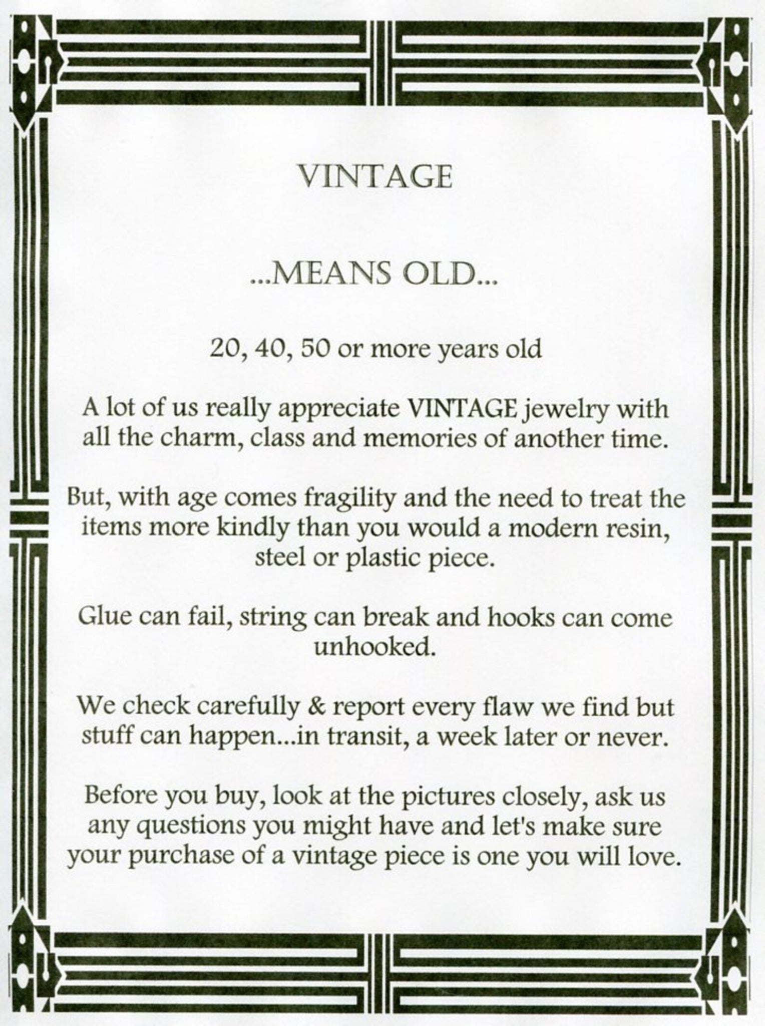I don't know where this guy has been for 40+ years, but he has built up an impressive amount of "patina". I have not cleaned him as I think he is more impressive in the dark stage than he would be all shined up. As with any vintage jewelry, the owner & wearer needs to take special care of this piece, especially the clasp.